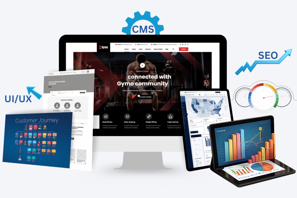 We specialize in custom website development services that are 100% tailored to your business needs — no templates, no shortcuts. As a full-service web design and development agency, we combine design, development, and SEO to deliver long-term results, not just websites.